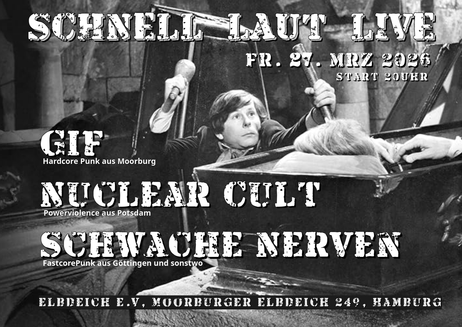27.03.2026 Schnell Laut Live mit GiF, Nuclear Cult and more – elbdeich EV